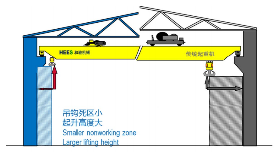 ? 吊鉤極限尺寸小,有效增加廠房作業(yè)面積